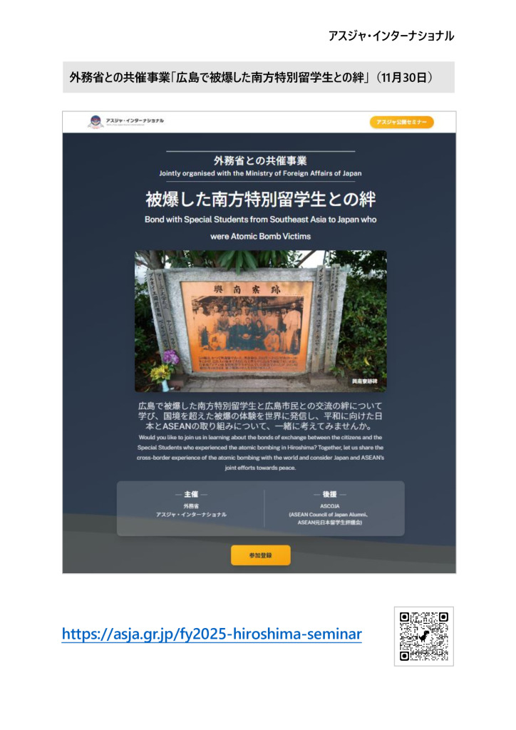 2025年11月30日に外務省とアスジャ・インターナショナルが共催で「被爆した南方特別留学生との絆」…